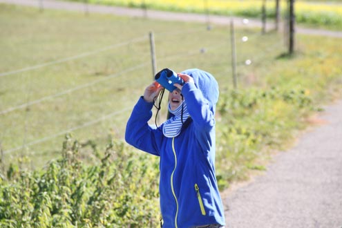 Wir wollen auf eine Erkundungstour zur Erdgeschichte gehen. Herr Müller vom örtlichen Museumsverein begleitet uns und ermöglicht uns einerseits die Suche nach Fossilien im Sand und führt uns auch durch das Museum. Zuerst suchen wir mit Sieb und Schaufel im Sammleraufschluss des Steinheimer Schneckensandes. Das ist ein mit fossilen Schneckengehäusen durchmischter Sand, dort können wir nach Herzenslust graben und entdecken.