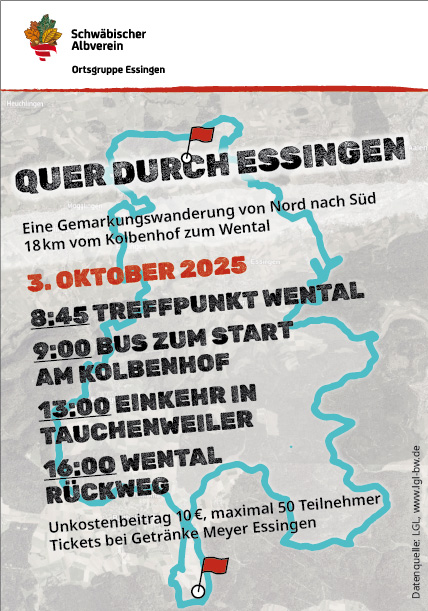 wir laden euch herzlich zu unserer Gemarkungsdurchquerung ein. Wir treffen uns am Wanderparkplatz Wental. Abfahrt mit dem Bus zum Kolbenhof ist dort um 8:45 Uhr.