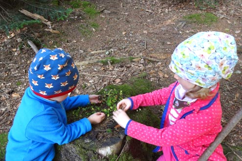 Walderlebnistag in Heubach-Lautern. Naturerfahrung ist für kleine Kinder ein elementares Bedürfnis. Der Wald bietet Bewegungsvielfalt, reiche Sinnesanregungen und vielfältige Naturmaterialien. Die Kinder können auf Wurzelwegen ihr Gleichgewicht üben, Hänge hochklettern, über Baumstämme balancieren und mit Naturmaterialien, wie Steine, Stöcke, Erde, Zapfen und Moos experimentieren und konstruieren.